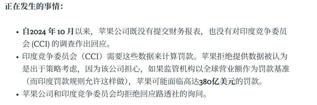更离谱的是这个罚款金额高达 380 亿美元,苹果 2025 年在印度营收才 90 亿美元,净利润仅 3.6 亿美元。