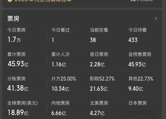 说着说着,还得聊回隔壁那个让所有老板羡慕的《疯狂动物城2》。明明快下映的老片,一到周末又能嗨出七亿大票房,剪票的阿姨都笑翻了天。现在累计内地票房已经狂飙到45.93亿,看这架势,明天后天妥妥就冲46亿去了。更离谱的是海外那边游戏平台和电影院还大收割,总赚18.89亿美元,按汇率算快130亿人民币了,也真不是闹着玩。